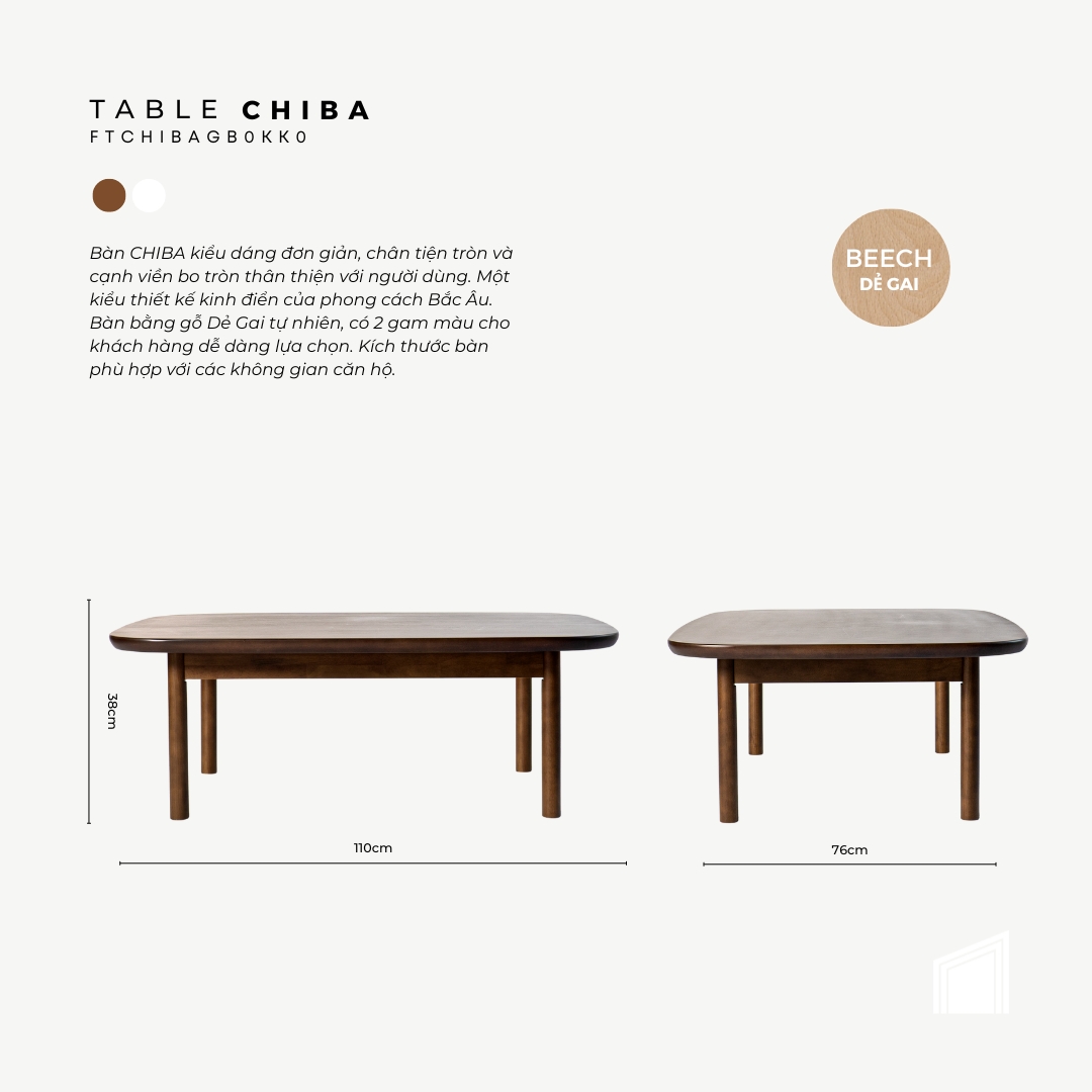 Bàn cafe CHIBA kiểu dáng đơn giản, chân tiện tròn và cạnh viền bo tròn thân thiện với người dùng. Một kiểu thiết kế kinh điển của phong cách Bắc Âu.
