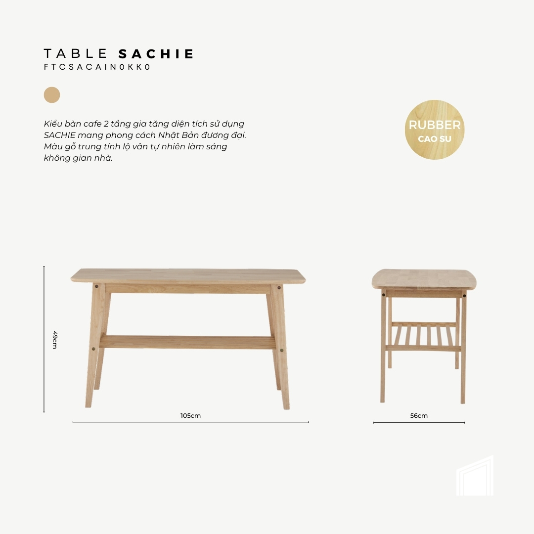 Kiểu bàn cafe 2 tầng gia tăng diện tích sử dụng Sachie mang phong cách Nhật Bản đương đại. Màu gỗ trung tính lộ vân tự nhiên làm sáng không gian nhà.