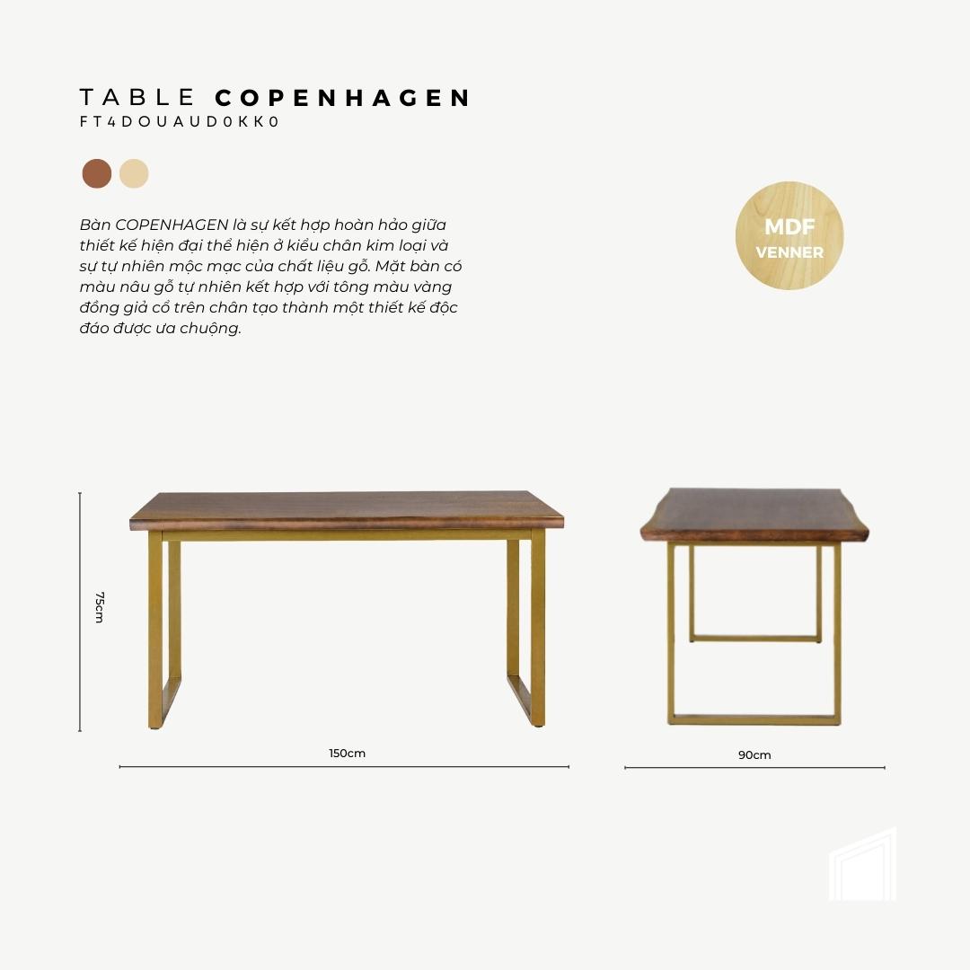 Bàn Copenhagen là sự kết hợp hoàn hảo giữa thiết kế hiện đại thể hiện ở kiểu chân kim loại và sự tự nhiên mộc mạc của chất liệu gỗ.