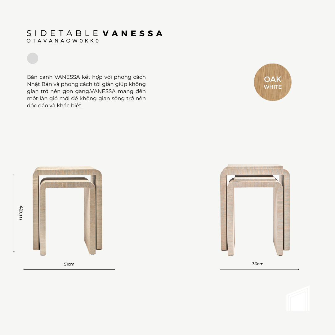 Bàn cạnh VANESSA kết hợp với phong cách Nhật Bản và phong cách tối giản giúp không gian trở nên gọn gàng.VANESSA mang đến một làn gió mới để không gian sống trở nên độc đáo và khác biệt.