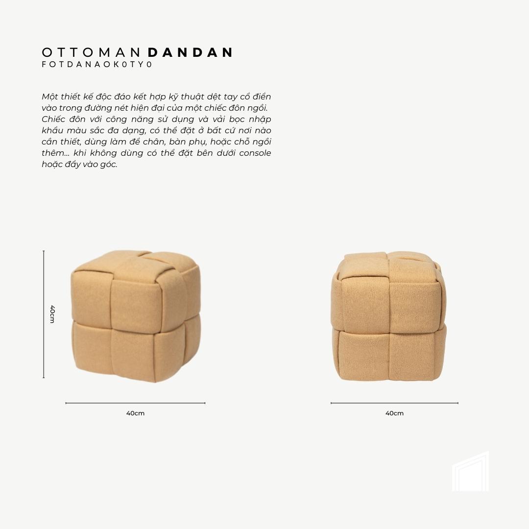Chiếc đôn với công năng sử dụng và vải bọc nhập khẩu màu sắc đa dạng, có thể đặt ở bất cứ nơi nào cần thiết, dùng làm để chân, bàn phụ, hoặc chỗ ngồi thêm... khi không dùng có thể đặt bên dưới console hoặc đẩy vào góc.