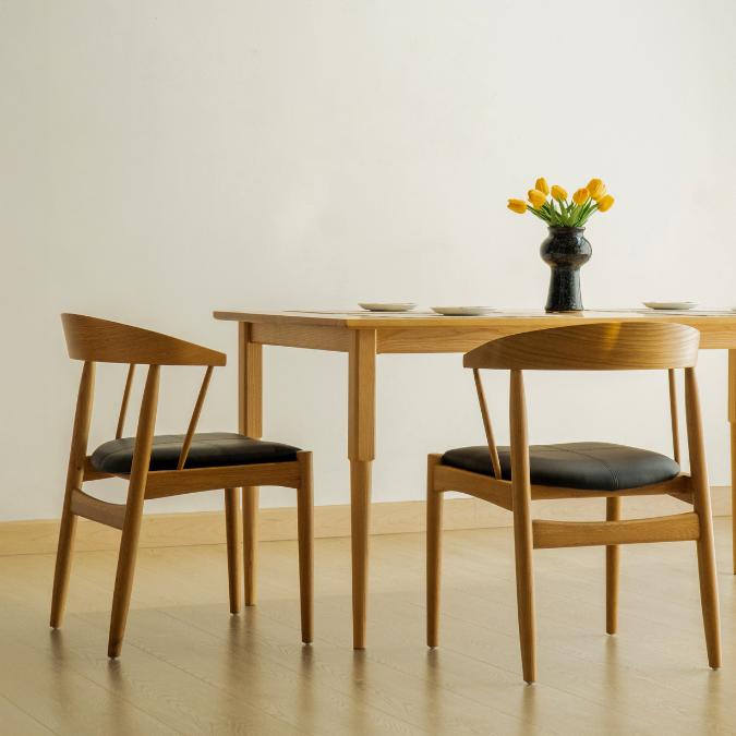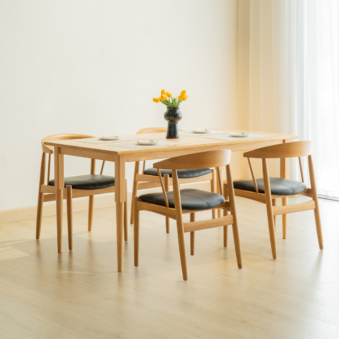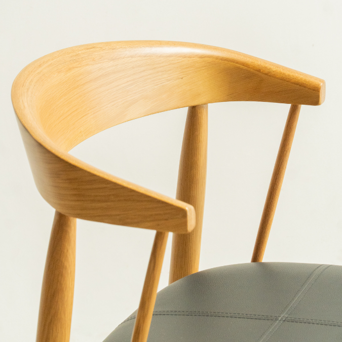Ghế ăn LUNOR được chế tác từ gỗ sồi tự nhiên với gam màu nâu trầm tinh tế. Đệm ngồi được thiết kế với đệm ngồi bọc simili êm ái, dễ dàng vệ sinh, kết hợp cùng khung gỗ sồi cao cấp chắc chắn, mang đến sự thoải mái cho những bữa ăn, buổi trò chuyện hay khoảnh khắc thư giãn.