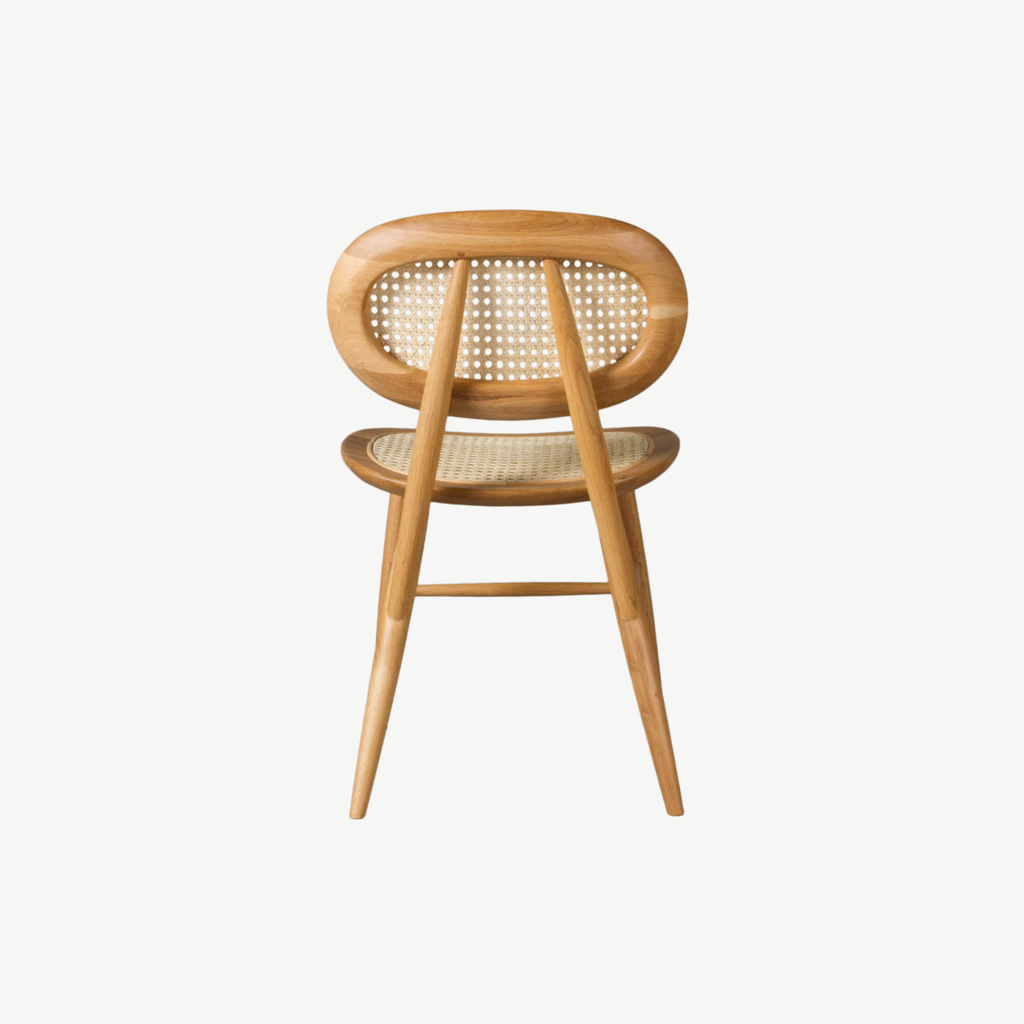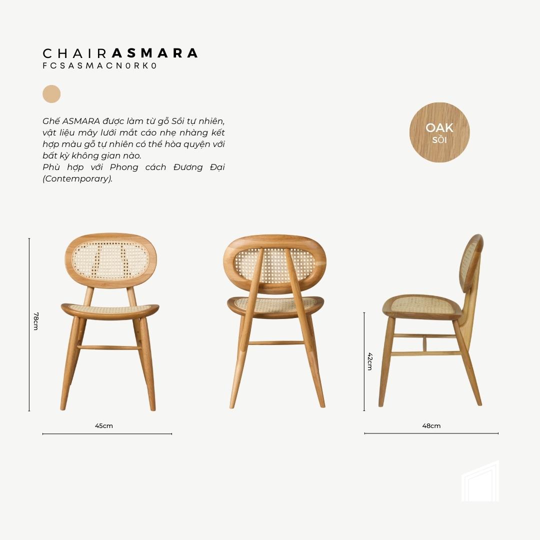 Ghế Asmara được làm từ gỗ Sồi tự nhiên, vật liệu mây lưới mắt cáo nhẹ nhàng kết hợp màu gỗ tự nhiên có thể hòa quyện với bất kỳ không gian nào.