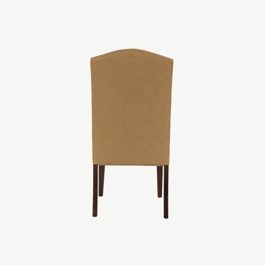 Hình dáng cổ điển của phom ghế kết hợp nệm lưng và nệm ngồi bọc vải tông màu trầm mang tính hoài cổ