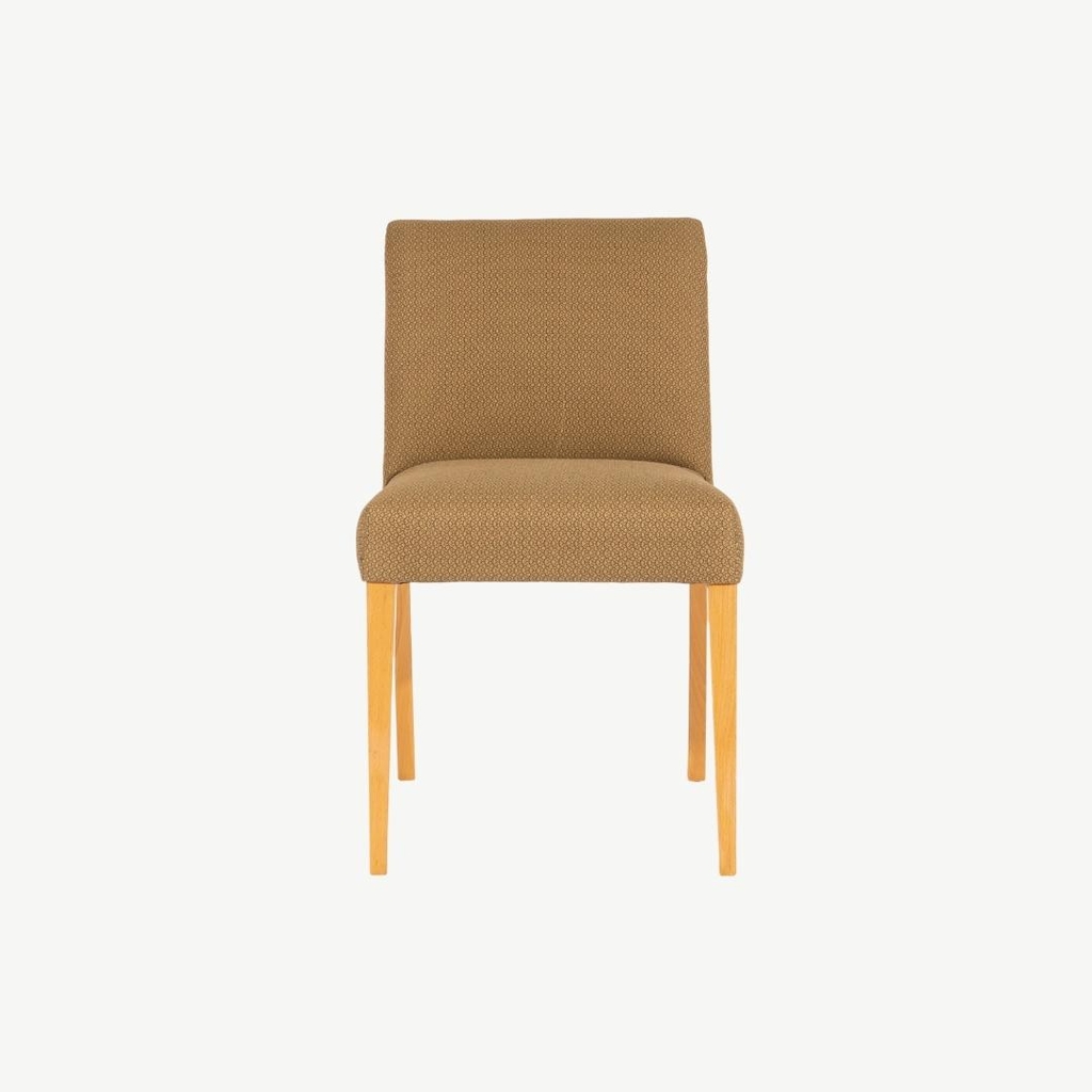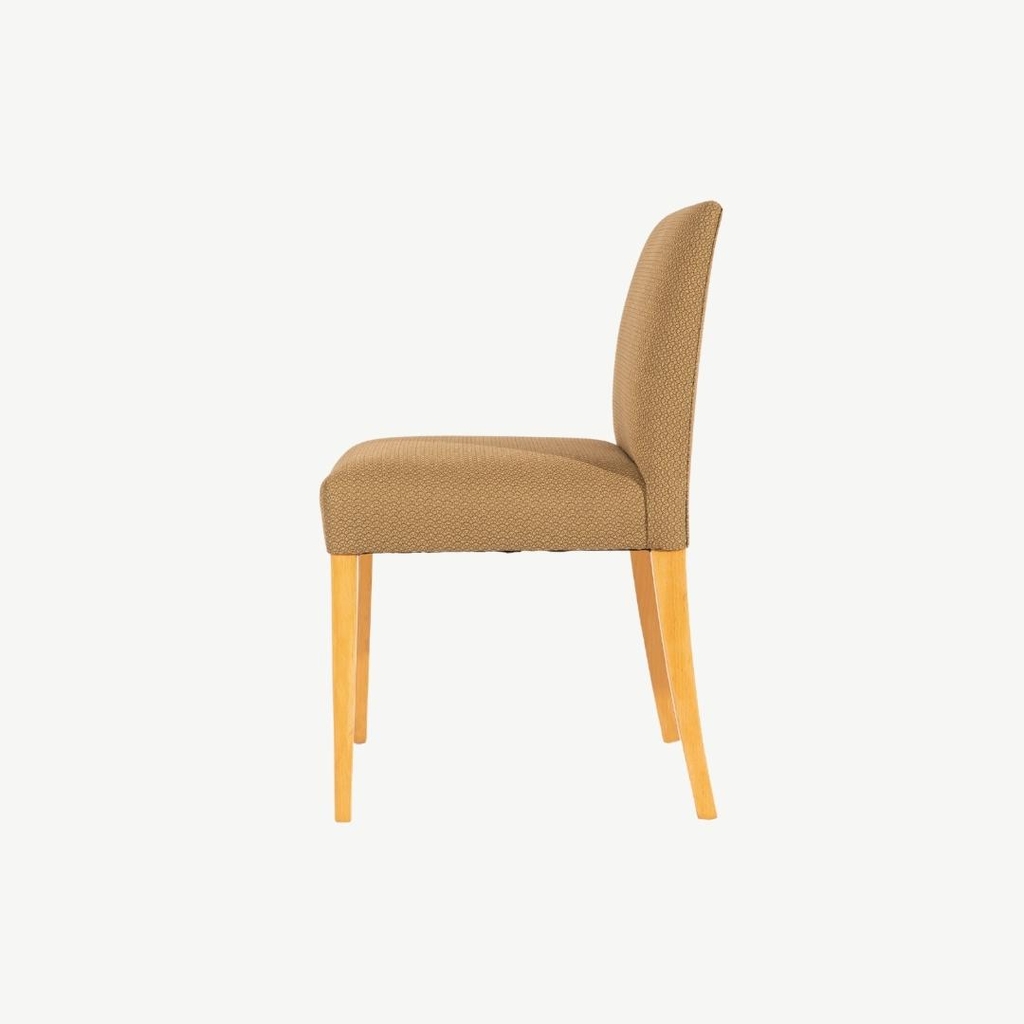 Hình dáng cổ điển của phom ghế kết hợp nệm lưng và nệm ngồi bọc vải tông màu trầm mang tính hoài cổ