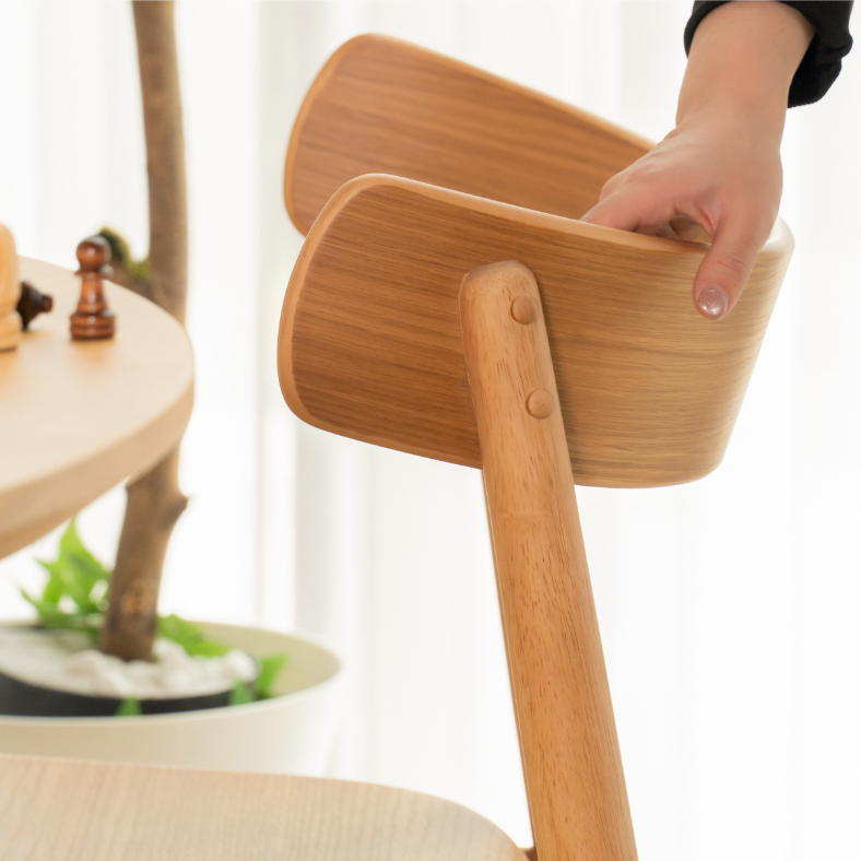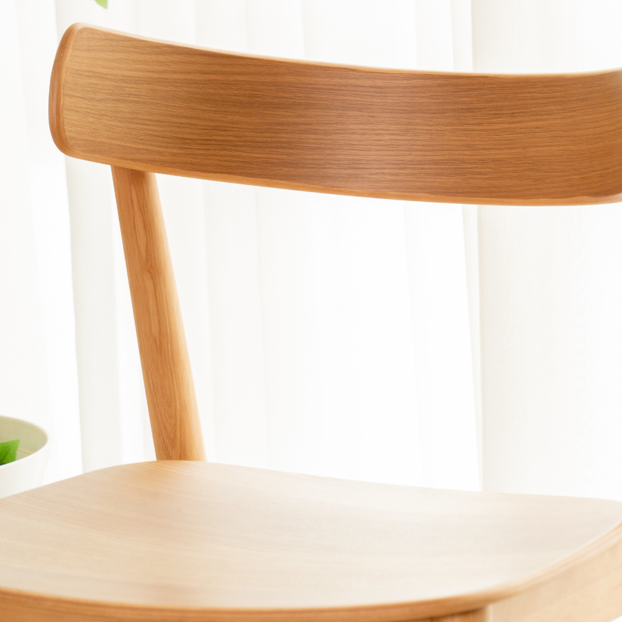 Ghế ăn MUJI được chế tác từ gỗ tự nhiên với gam màu sáng mộc mạc, thiết kế đơn giản nhưng tinh tế trong từng đường nét. Lưng ghế được uốn cong bằng kỹ thuật gia công tỉ mỉ đảm bảo sự liền mạch và nhẵn mịn. Dáng ghế ôm sát cơ thể tạo cảm giác thoải mái khi thưởng thức bữa cơm gia đình, tụ họp cuối tuần cùng bạn bè hay làm việc, đọc sách ngay tại bàn ăn.