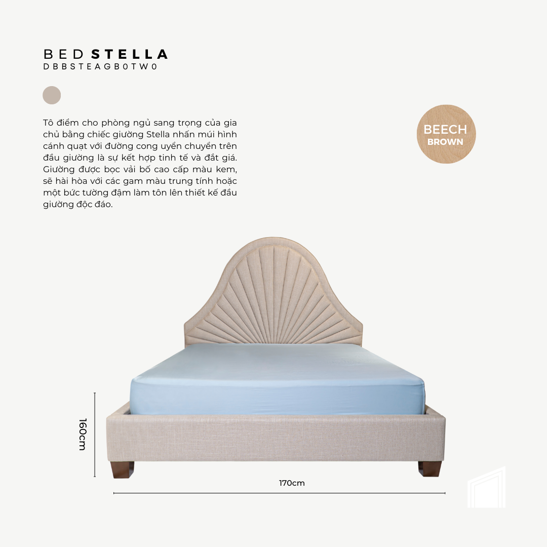Tô điểm cho phòng ngủ sang trọng của gia chủ bằng chiếc giường Stella nhấn múi hình cánh quạt với đường cong uyển chuyển trên đầu giường là sự kết hợp tinh tế và đắt giá. Giường được bọc vải bố cao cấp màu kem, sẽ hài hòa với các gam màu trung tính hoặc một bức tường đậm làm tôn lên thiết kế đầu giường độc đáo.