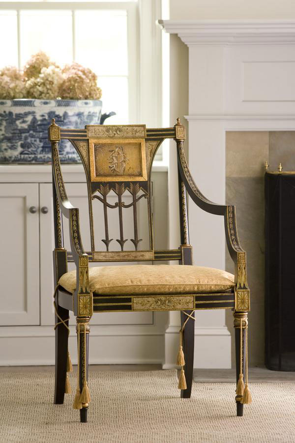 Các màu được ưu tiên sử dụng là những tông màu trầm như màu vàng, nâu, đen,… đây là những màu được cho là thể hiện được đẳng cấp của sự quý tộc, làm tôn lên vẻ đẹp, sự quý phái trong thiết kế nội thất. Bảng màu ban đầu của Hy Lạp cổ đại bao gồm màu đá phiến, xanh sương mù, đỏ tươi, tím, malachite nhạt, vàng nắng, trắng ngà, hồng cẩm thạch, đất sét;