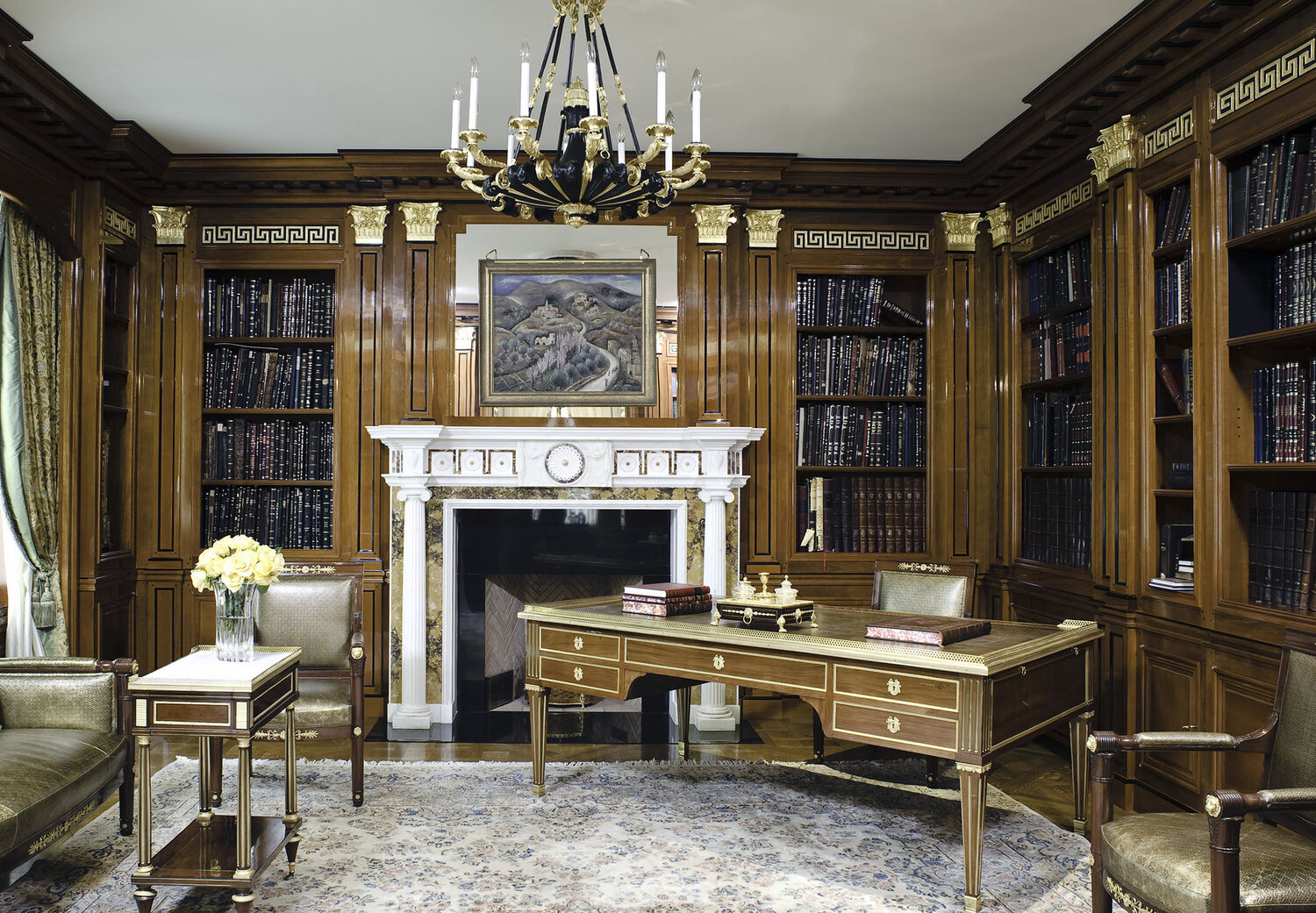 Phong cách thiết kế nội thất cổ điển dựa trên các nguyên tắc, sự cân bằng và đối xứng theo quy định chặt chẽ, với không gian vô cùng cầu kỳ, trau chuốt và nét đẹp vượt thời gian của những vòng cung, những đường nét, chi tiết phào chỉ và những hoa văn được chạm trổ công phu, đẹp mắt.