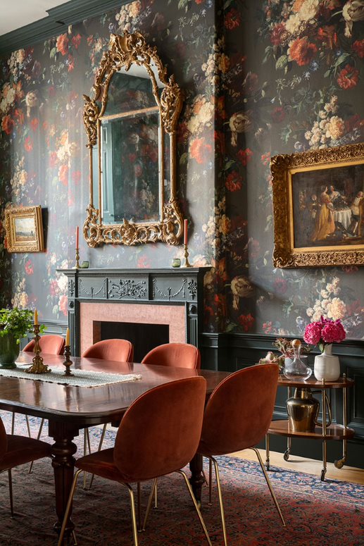 Floral - Hoa, các họa tiết như chintz, in khối Ấn Độ và hoa thực vật rất phù hợp với vải, hoa phong cách Dresden, Rose Medallion và các đồ gốm Chinoiserie.