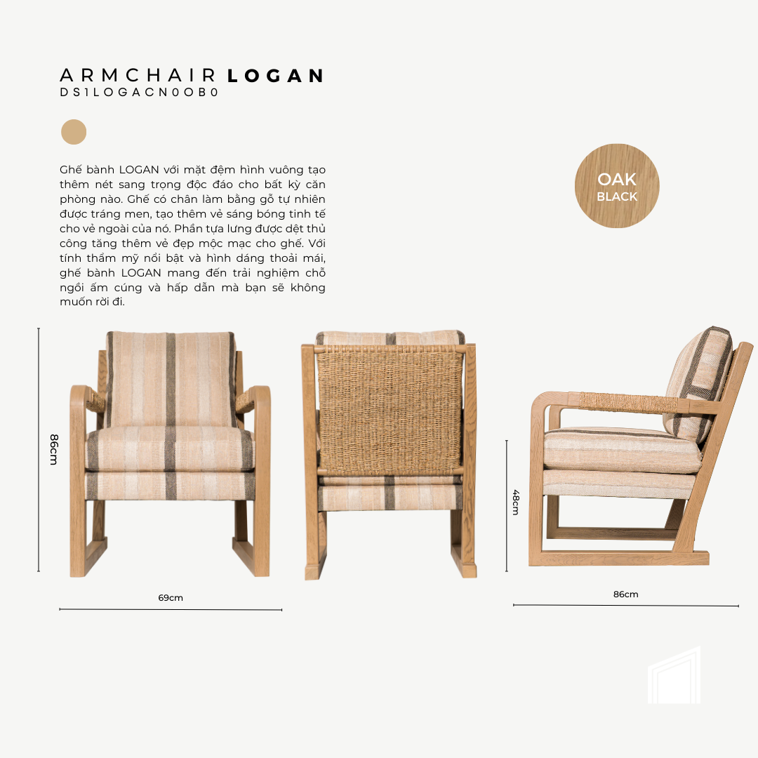 Ghế bành LOGAN với mặt đệm hình vuông tạo thêm nét sang trọng độc đáo cho bất kỳ căn phòng nào. Ghế có chân làm bằng gỗ tự nhiên được tráng men, tạo thêm vẻ sáng bóng tinh tế cho vẻ ngoài của nó. Phần tựa lưng được dệt thủ công tăng thêm vẻ đẹp mộc mạc cho ghế. Với tính thẩm mỹ nổi bật và hình dáng thoải mái, ghế bành LOGAN mang đến trải nghiệm chỗ ngồi ấm cúng và hấp dẫn mà bạn sẽ không muốn rời đi.